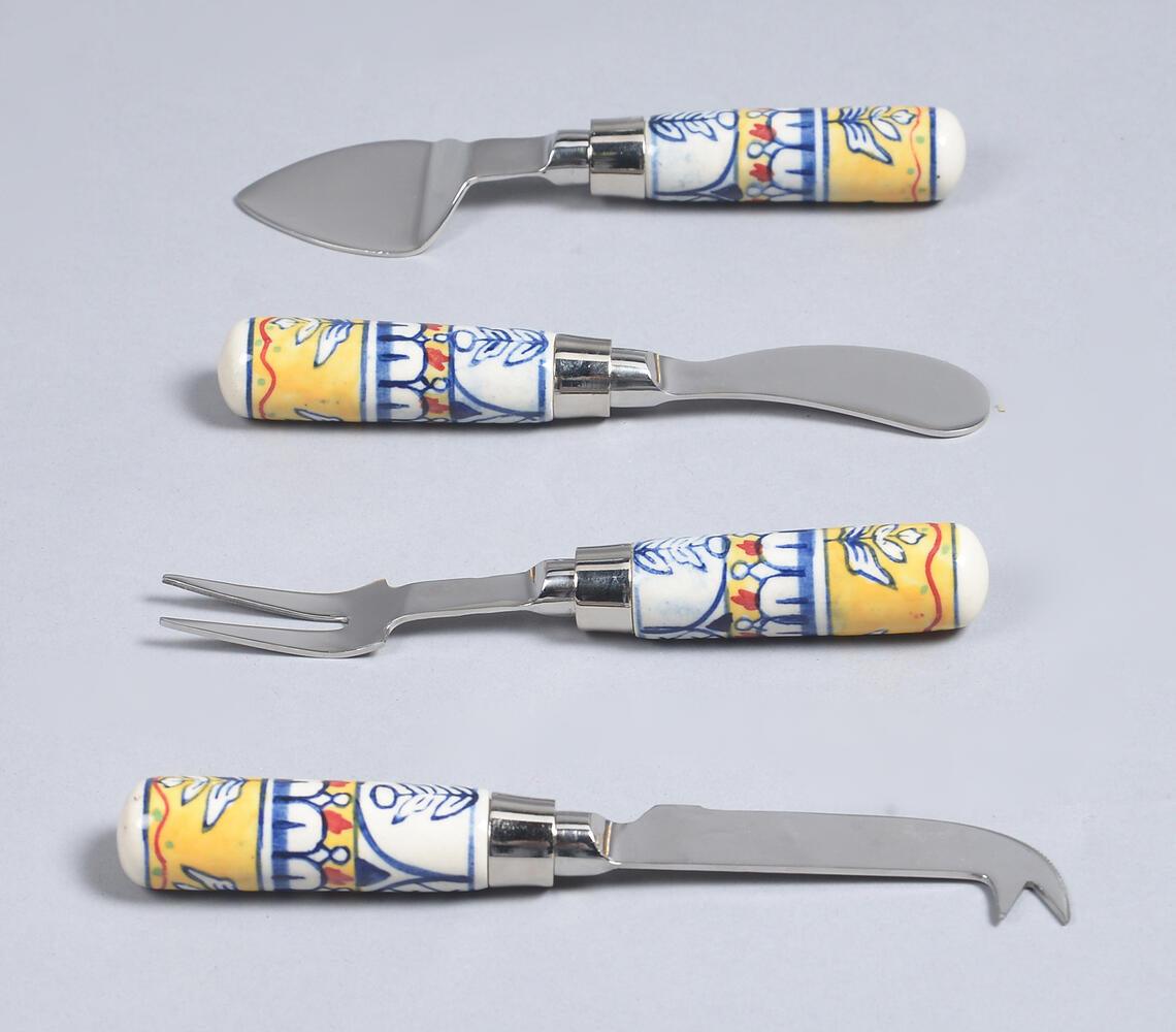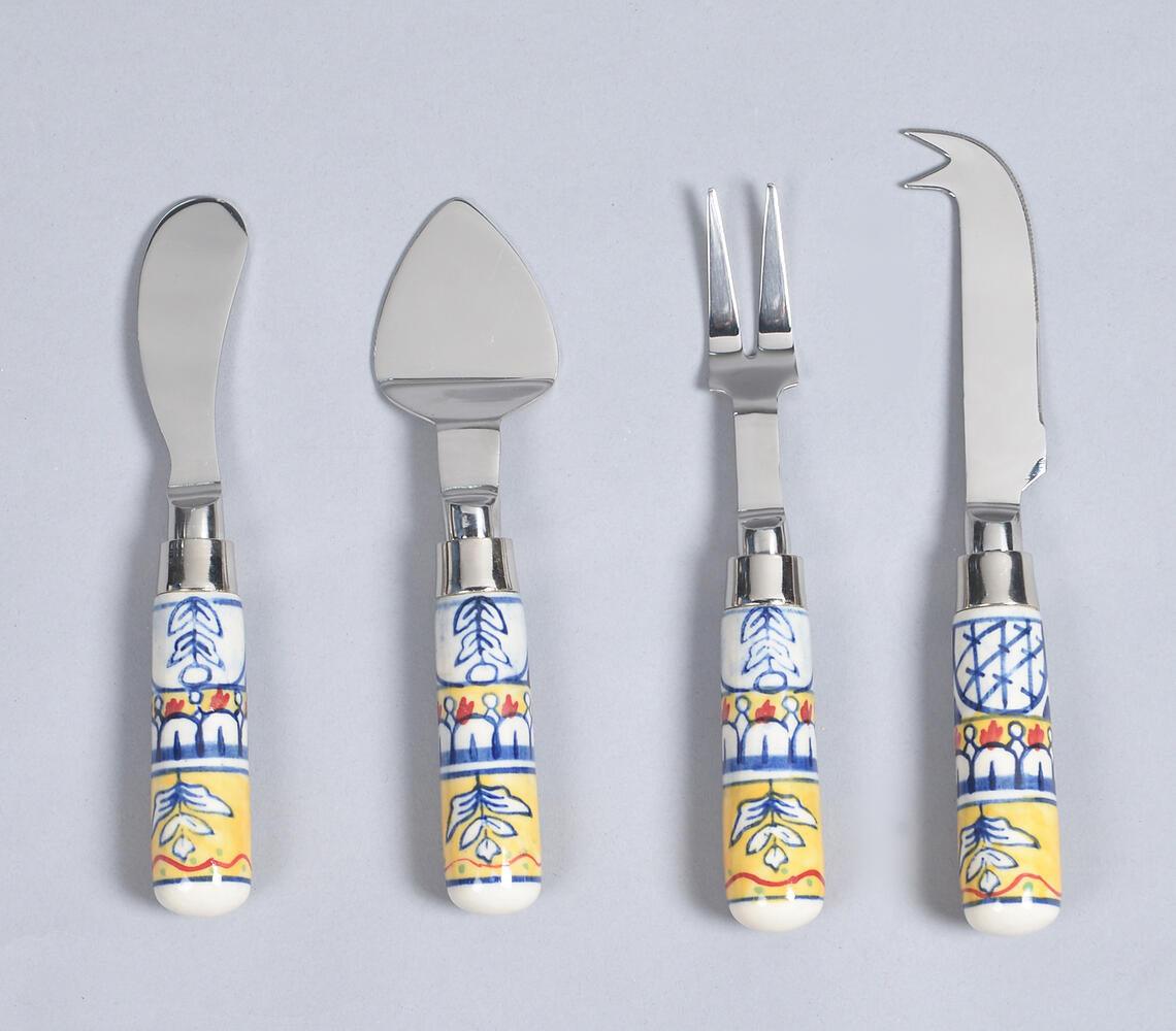 Embodying the perfect balance of artistic touch and contemporary looks, Harfiy brings this set of visually-striking cutlery; including a knife, slicer, spreader and a fork. Crafted by creative minds of North India, this enchanting product is made of stainless steel and its handle is made of ceramic; and it has been hand painted. Hand painting is seen widely practiced in India by both men and women artists who are utterly talented. Visually-striking, traditional paintings usually use naturally-derived, vegetable and plant-based solid colors or metallic ones from earthy minerals like mica. Artists first carefully design a rough sketch with pencils and markers on the base material to be painted, before filling locally-sourced colors with fine brushes in the marked design. Each artwork is all about the intricate detail and exclusivity!
